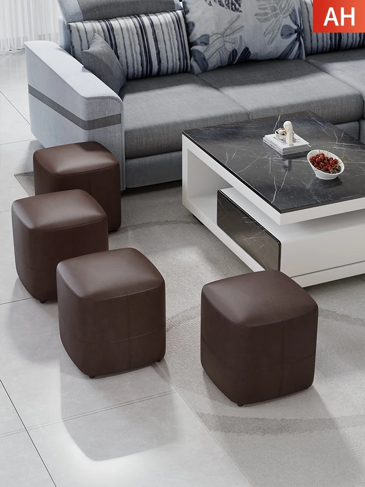 リビング用シンプルなスツール - おしゃれな四角いソファテーブル、使い勝手抜群の小さな椅子、靴を脱ぐのに最適な革製スツール。家のインテリアにぴったりのスタイリッシュなアイテムです!
