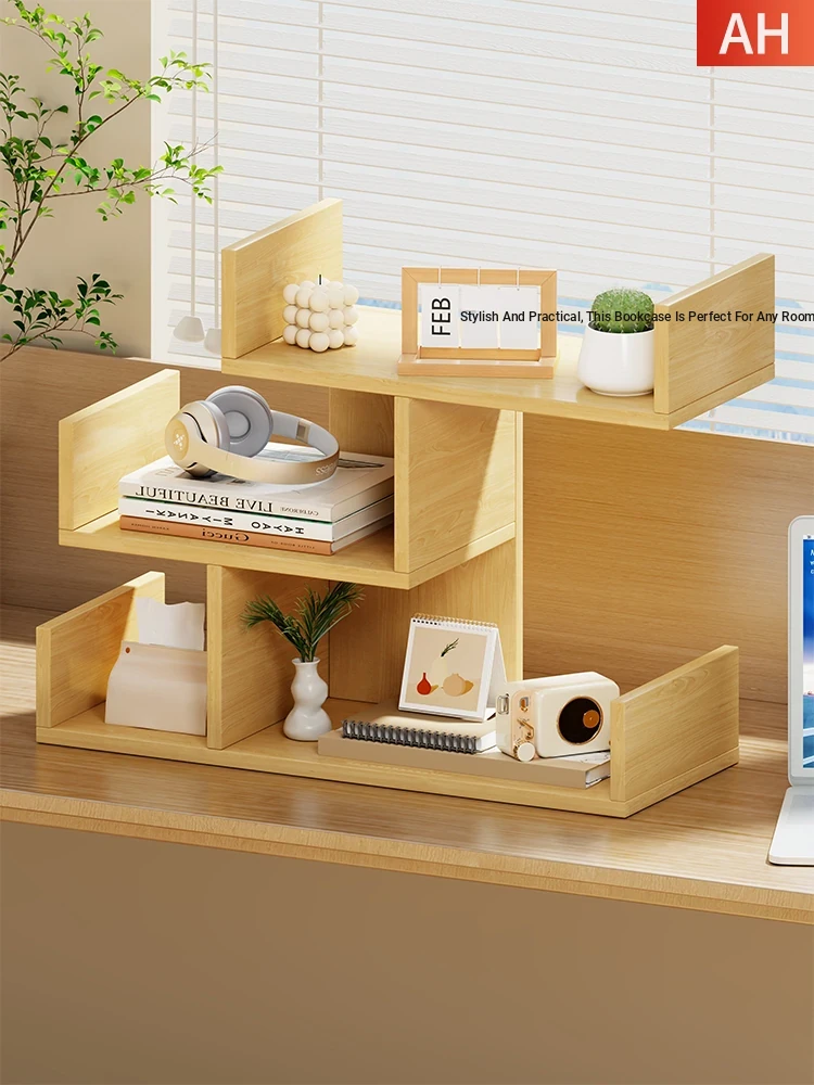 Multi-Layer Desktop Storage Shelf - Simple Bookcase for Desk, Kids' Storybook Organizer, Bedroom Storage Cabinet, Perfect for Organizing Your Workspace and Enhancing Room Aesthetics.