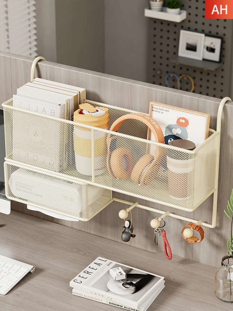 Office Desk Organizer with Hanging Basket - Space-Saving Storage Solution for Workstations and Dorm Rooms, Perfect for Bedside Use and Keeping Your Space Tidy!