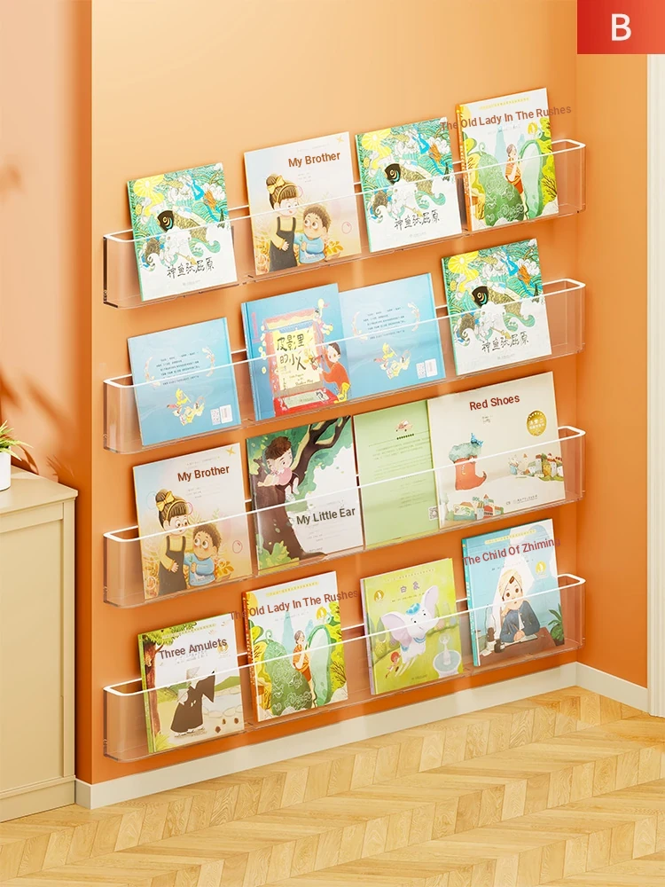No-Drill Wall-Mounted Bookshelf - Transparent Acrylic Display Rack for Children's Storybooks, Ideal for Hallway or Door Use, Perfect for Organizing and Showcasing Your Child's Favorites!