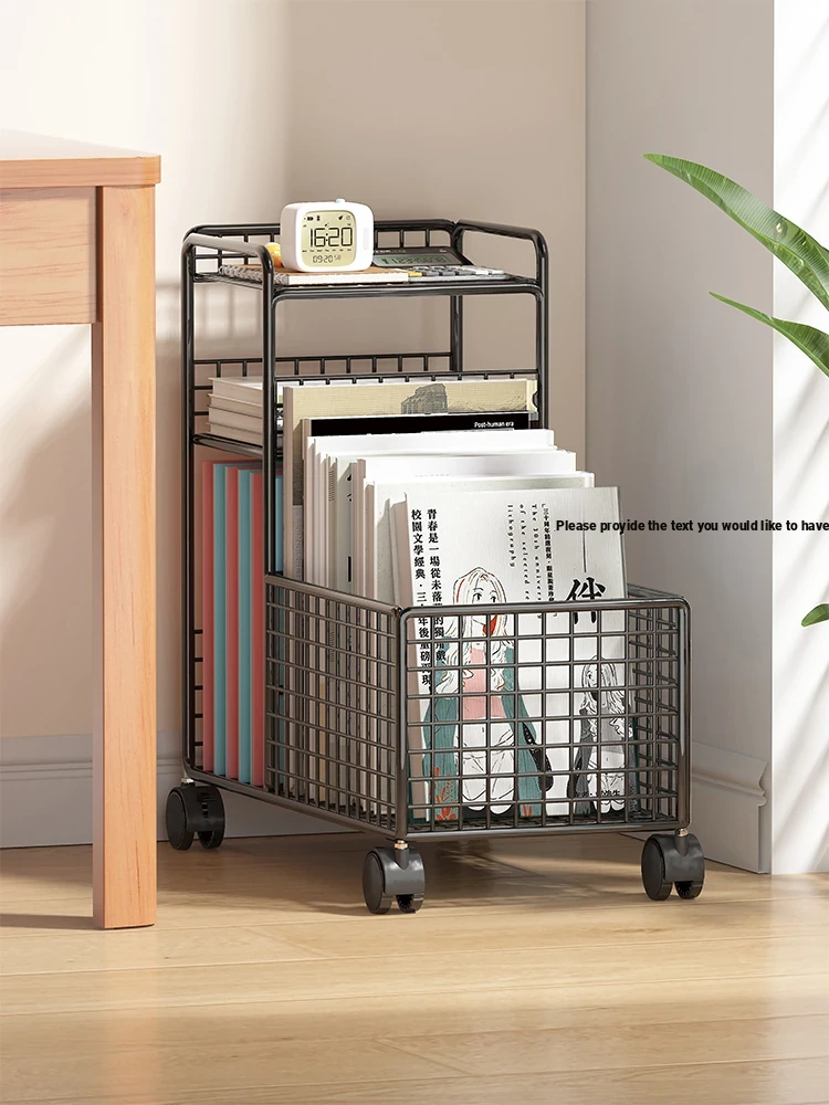 Kids' Floor Bookshelf with Wheels - Mobile Storage Cart for Students, Multi-Tiered Organizer with Baskets, Perfect for Easy Access and Stylish Desk Side Organization!
