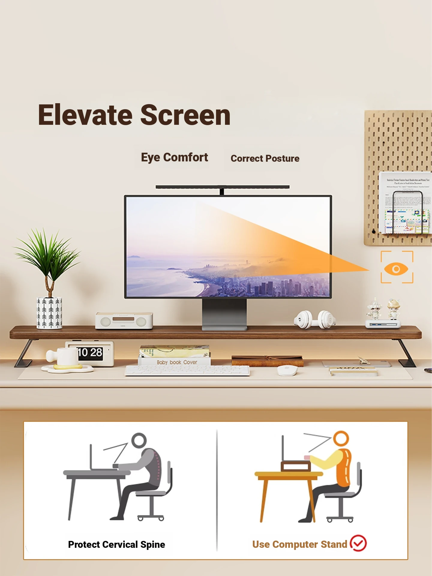 Adjustable Computer Monitor Stand for Office - Elevate Your Desktop Screen and Keyboard with a Stylish Storage Rack