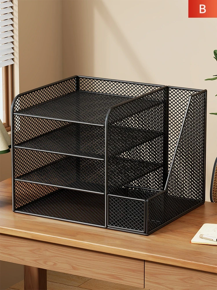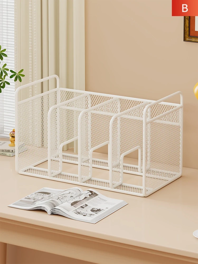 Stylish Iron Desktop Organizer - Compact File Rack with Pen Holder for Office & Student Use - Perfect for Books & Supplies Storage