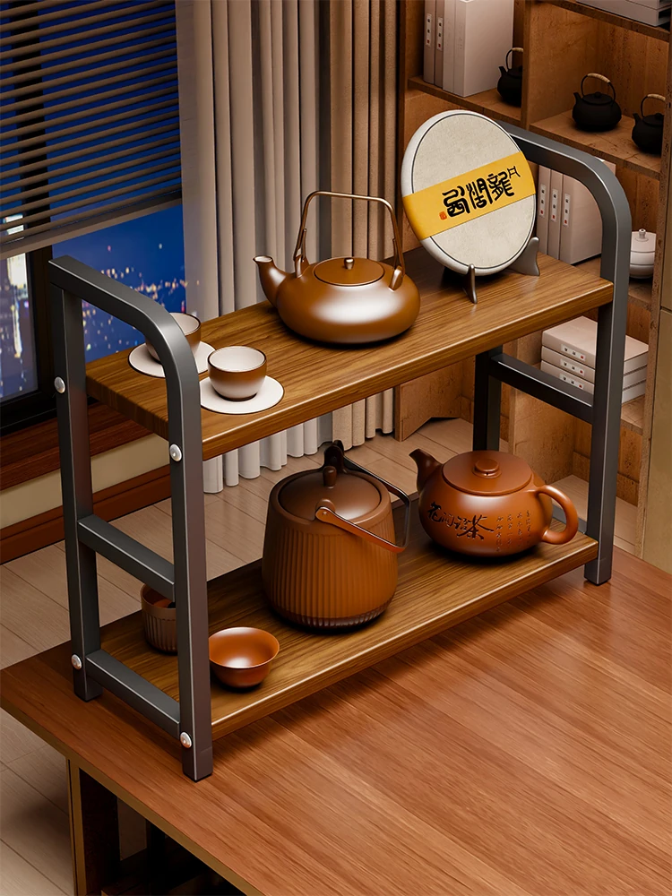 Vintage Miniature Display Shelf for Tea Cups - Elegant Kung Fu Tea Set Storage Rack with Yixing Teapot Holder - Perfect for Organizing and Showcasing Your Teaware Collection