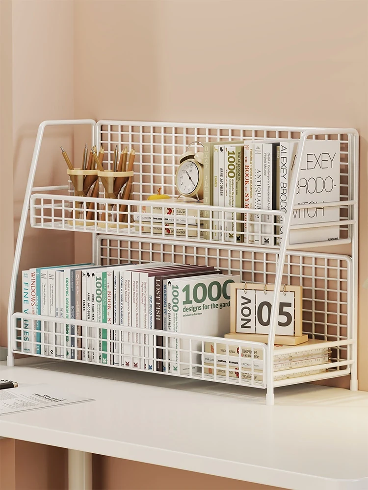 Multi-Tiered Iron Office Desk Bookshelf - Stylish and Functional Storage Rack for Home & Office, Perfect for Organizing Files, Books, and Miscellaneous Items