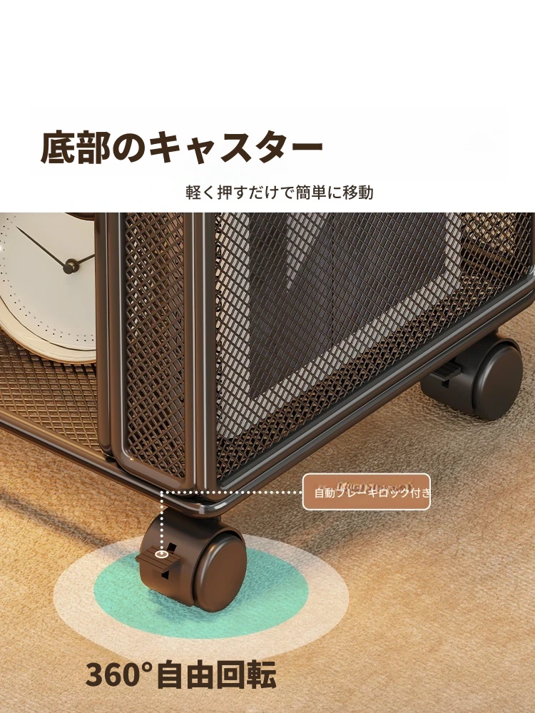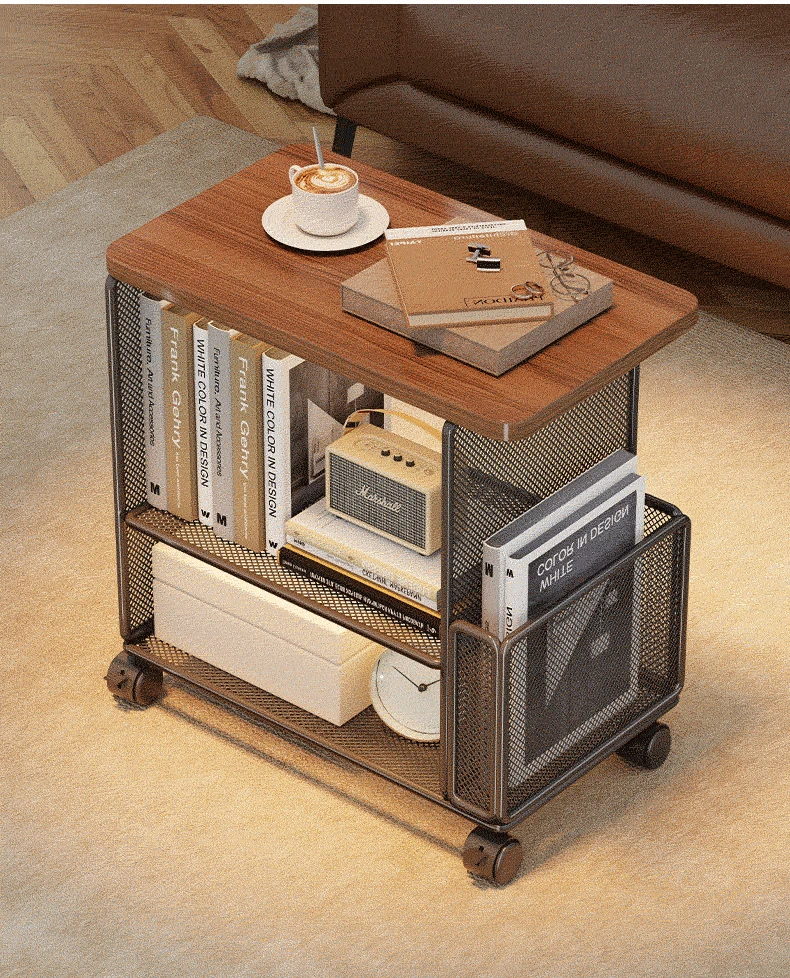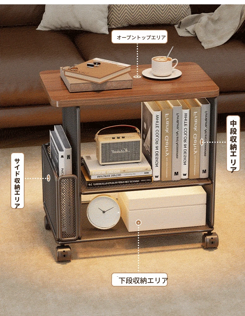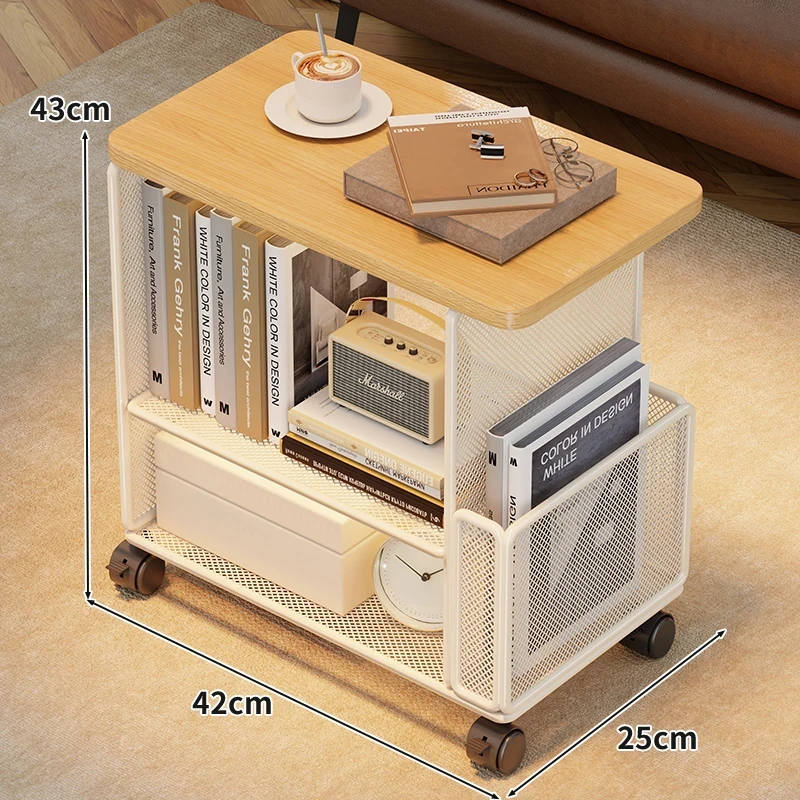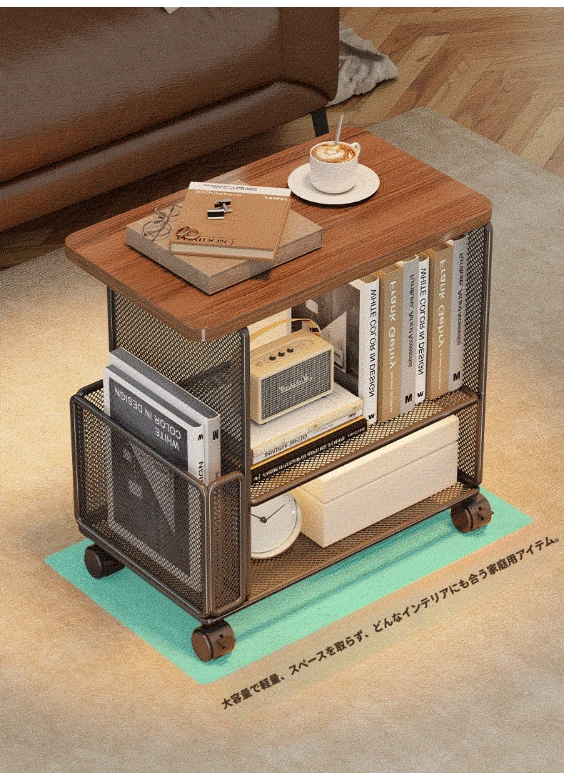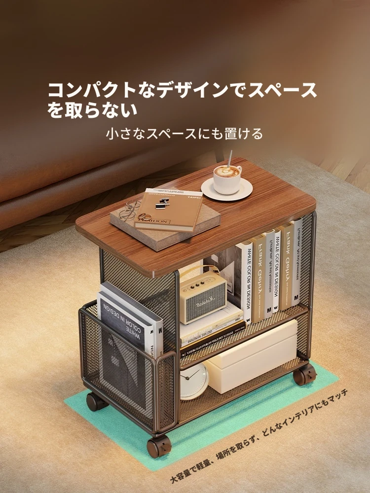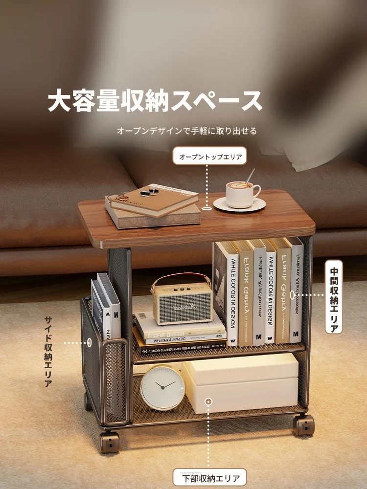 スタイリッシュなリビング用移動サイドテーブル - コンパクトなアパートに最適!簡単収納、ソファサイドやベッドサイドにピッタリな小型キャビネット付き。便利なキャスター付きで、どこでもスムーズに移動可能!