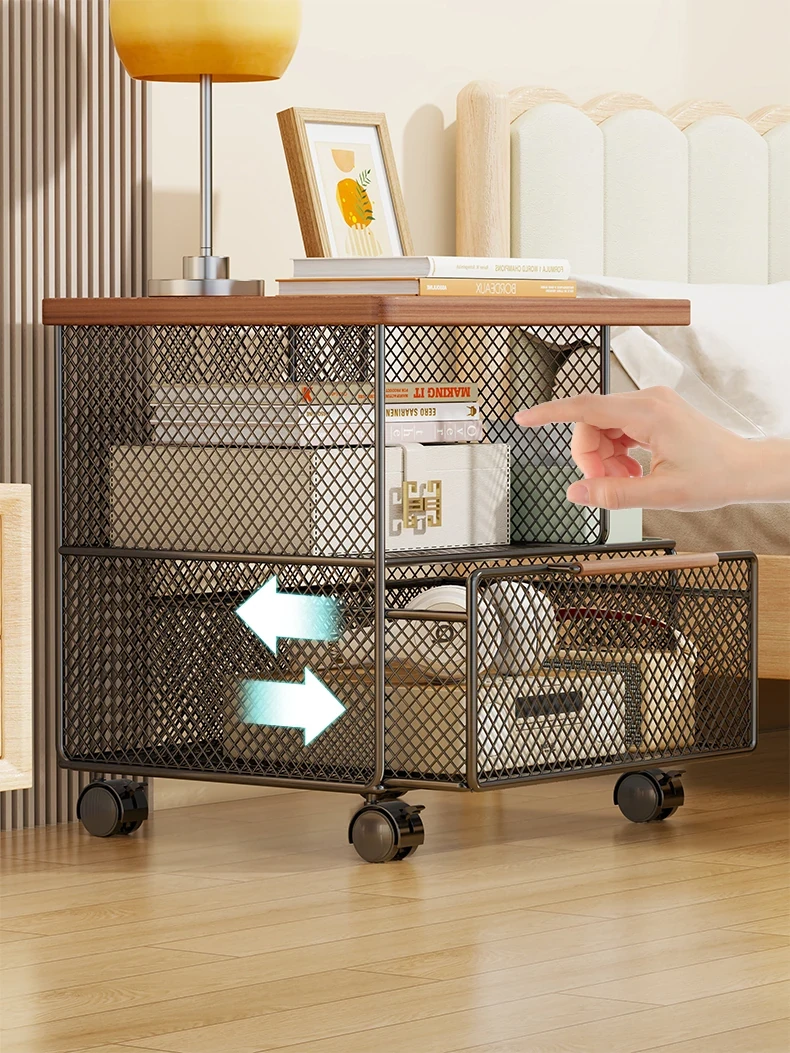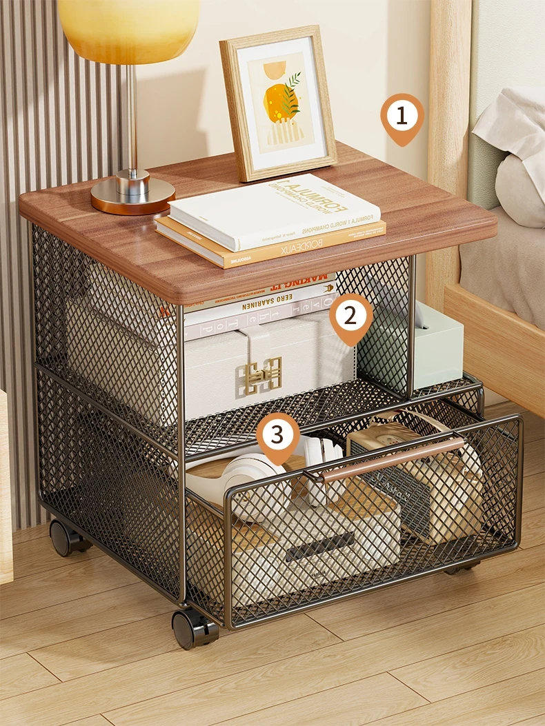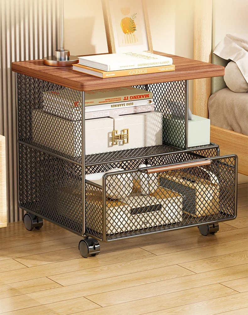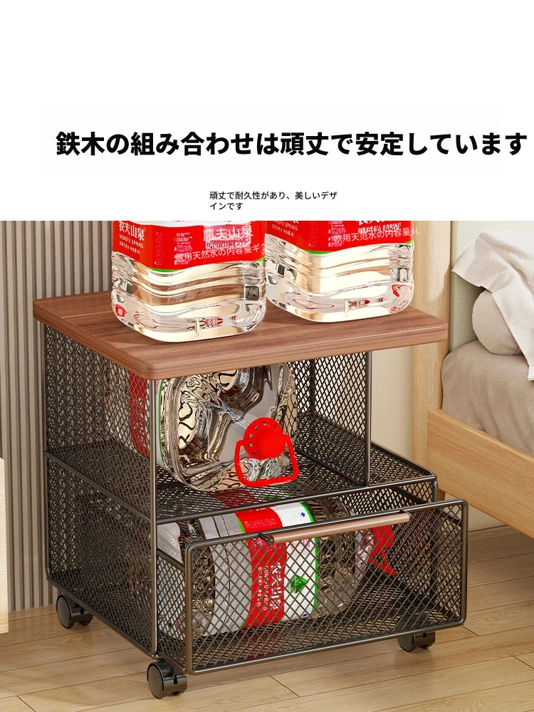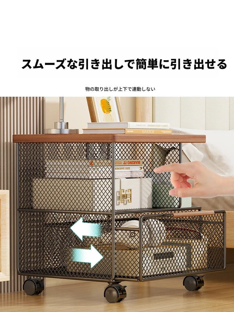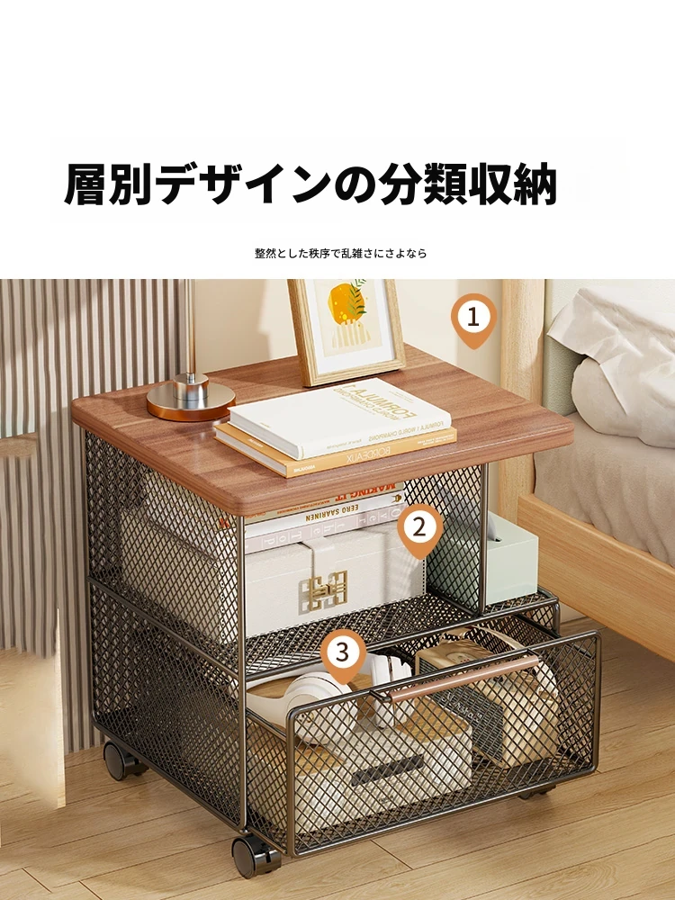 ベッドサイド収納ラック - シンプルでおしゃれな多層デザイン!雑誌や小物をスッキリ整理できる便利なキャスター付き収納キャビネット。お部屋をスタイリッシュに演出し、使い勝手も抜群!
