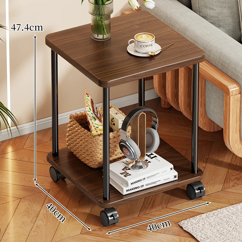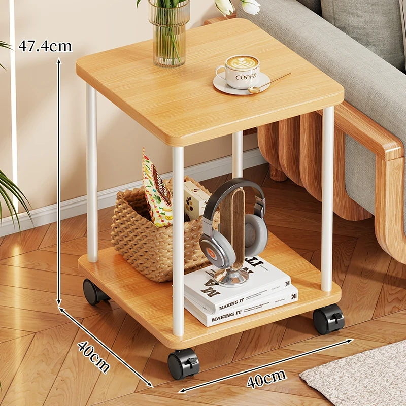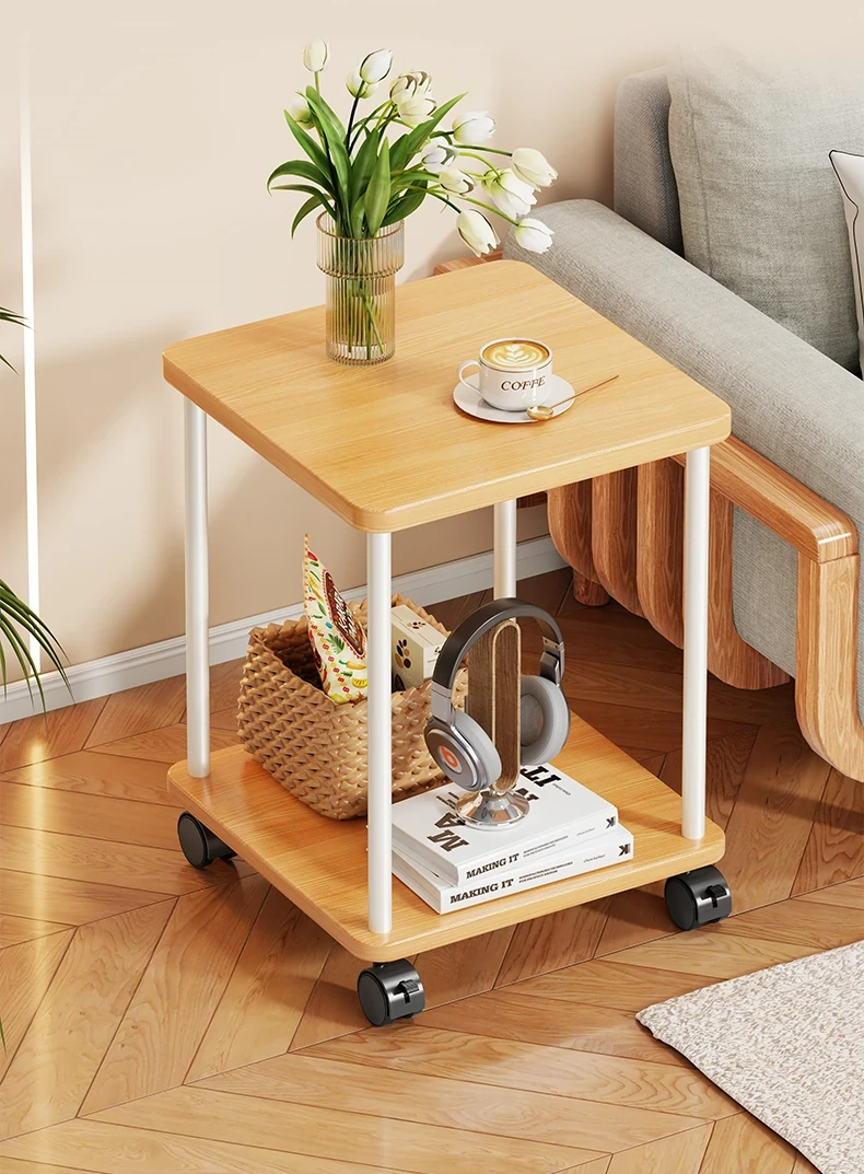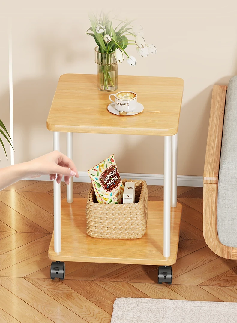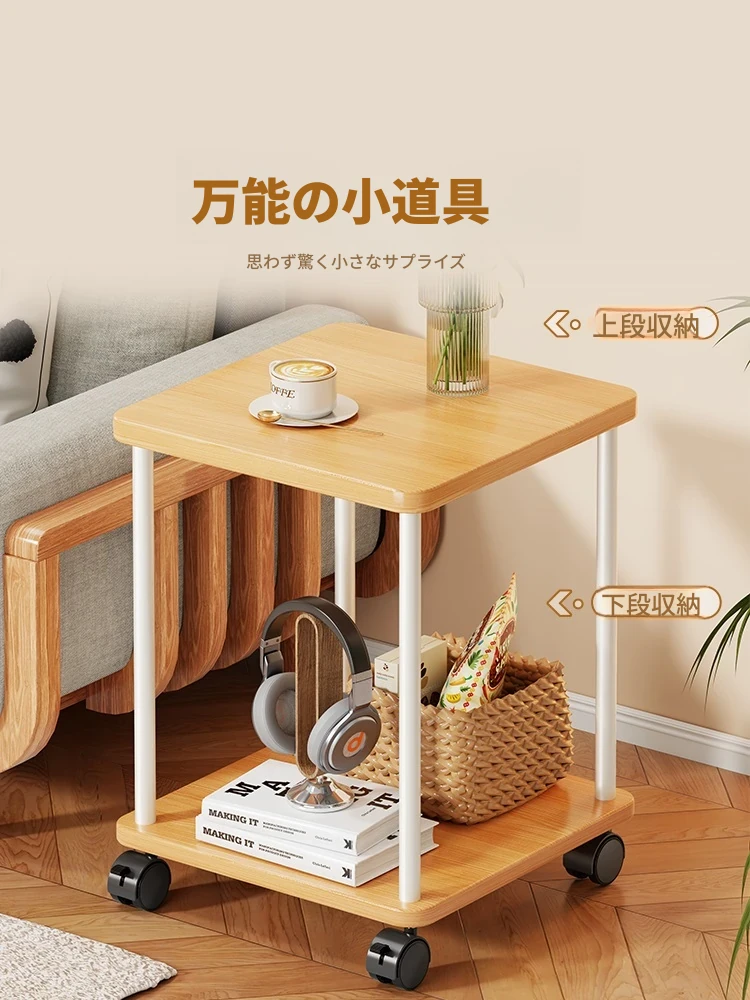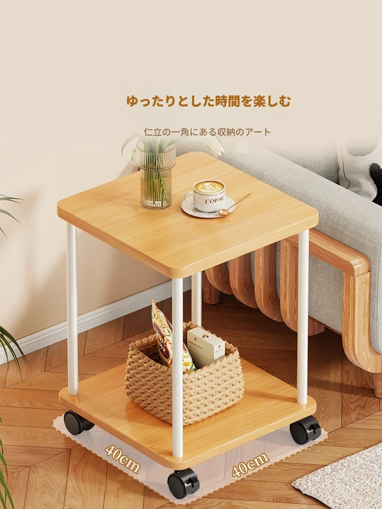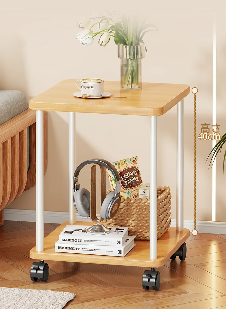 実木製ソファサイドテーブル|家庭用移動式ティーテーブル|寝室・バルコニーにぴったりなミニテーブル|ベッドサイド収納ラック|シンプルで小型住宅に最適!