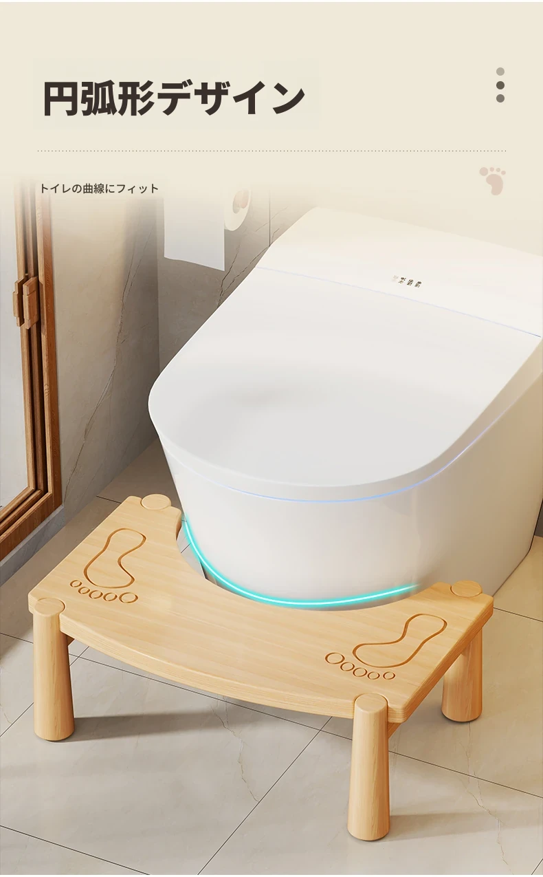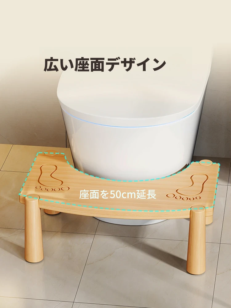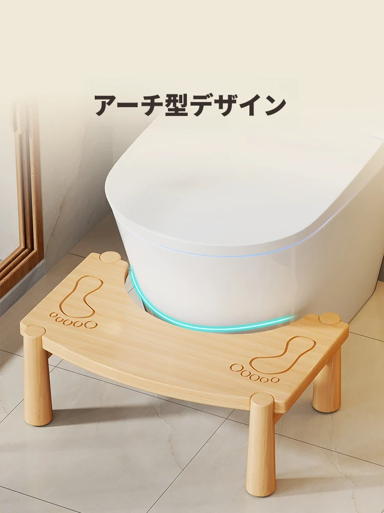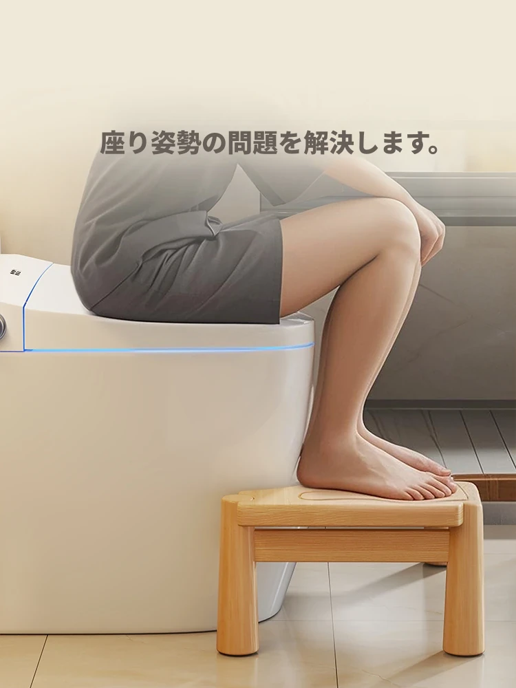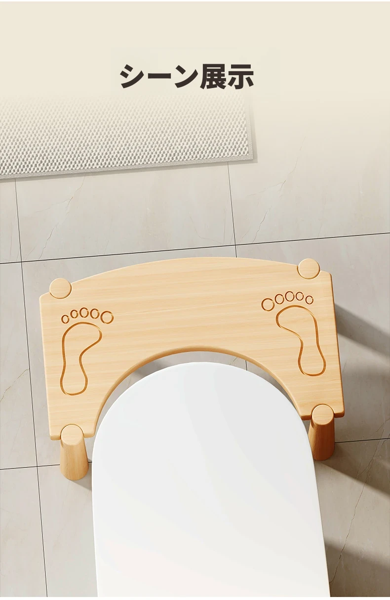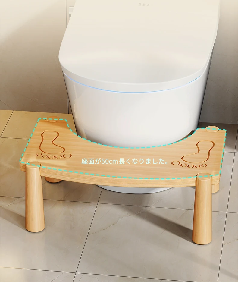 天然木製トイレ用スツール - 踏み台付きの快適なトイレ体験を実現!おしゃれで実用的なデザイン、トイレでの用足しをもっと楽に、楽しく。あなたのトイレライフを変える必需品!