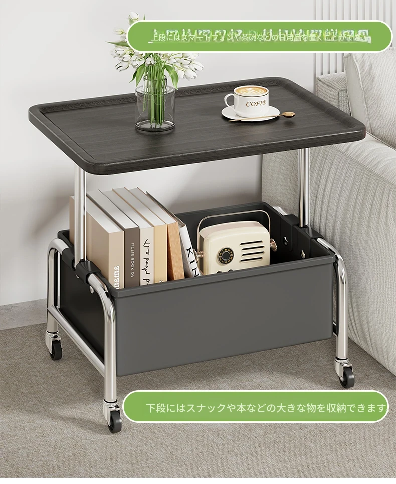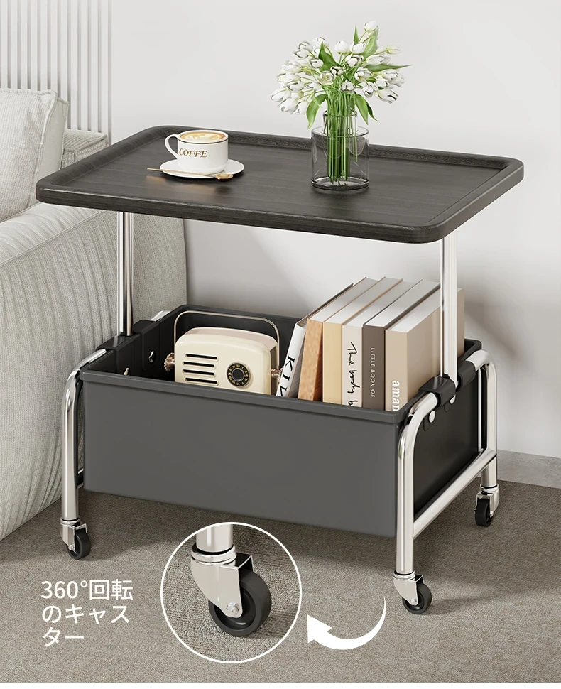 移動式ソファサイドテーブル!ミニサイズのリビング用ティーテーブル、使い勝手抜群の小型キャスター収納ラック。高級感漂うヴィンテージスタイルのベッドサイドキャビネットで、おしゃれな空間を演出しよう!
