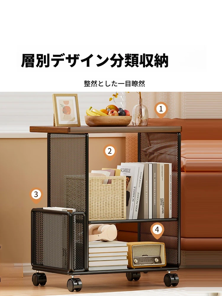 多機能小テーブル:リビングや寝室に最適なソファサイドテーブル!移動可能で、収納力抜群のマルチレイヤーキャビネット。あなたの生活空間をスマートに整理整頓!