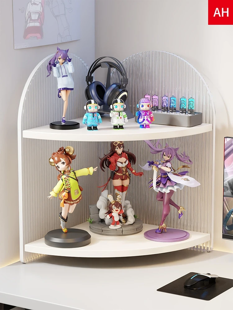 学生寮やオフィスに最適!角度を活かしたおしゃれな多層収納ラック。デスク周りをスッキリ整理し、フィギュアや小物を美しくディスプレイ。機能性とデザイン性を兼ね備えた便利なアイテム!