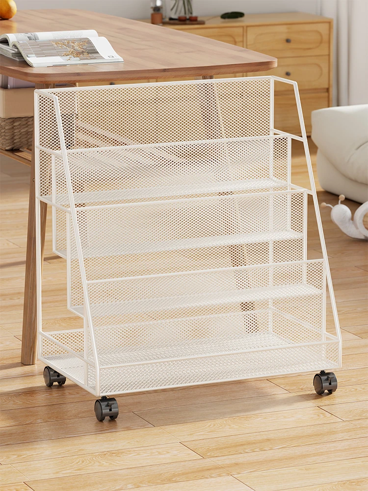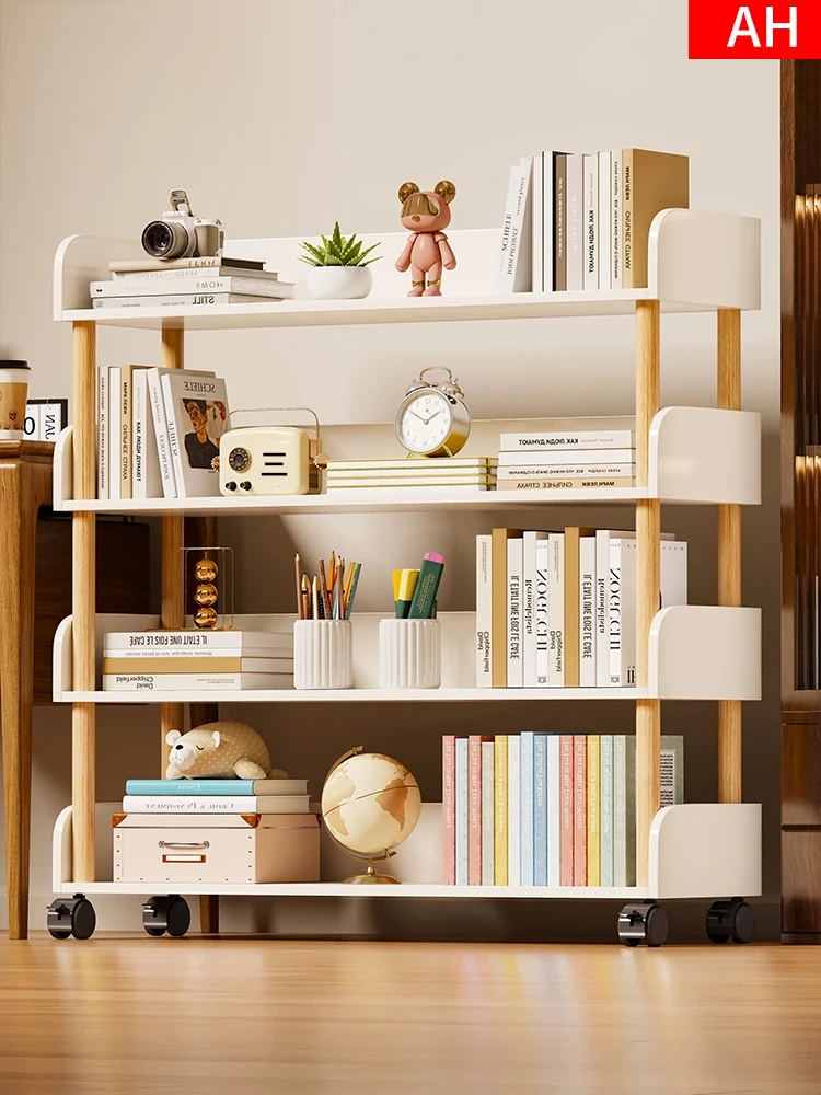 簡易移動式ブックシェルフ - 子供部屋にも最適!多層収納でデスク横や壁際にぴったり。キャスター付きでお掃除もラクラク!家庭用に便利な小型収納ラック。
