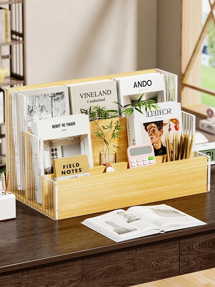 オフィスデスク用収納ラック - 書斎や寝室に最適!コンパクトな収納ボックスで、リビングやオフィスの雑誌整理も簡単。美しいデザインでスペースを有効活用し、スッキリとした空間を実現します!