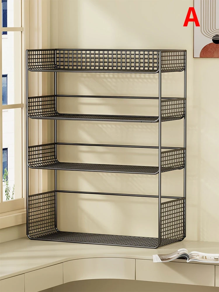 デスク上のファイル収納ラック - シンプルな本棚、家庭用デスクに最適な多層整理ラック!職場の資料整理に便利なボックス付きで、スッキリとした空間を実現します!