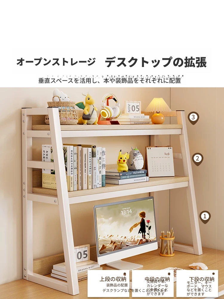 子供向けデスク収納ラック・絵本ラック!リビングや寝室に最適なコンパクトな多層式本棚。お子様の本をすっきり整理できるシンプルなデザインで、部屋をおしゃれに演出します!