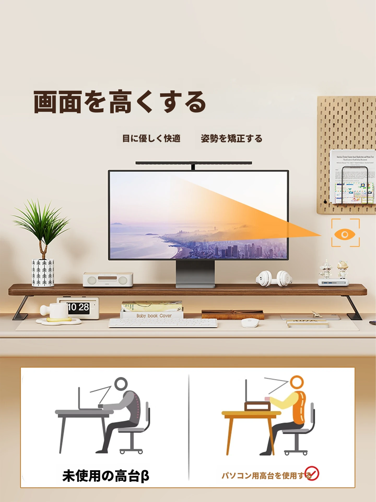 デスクトップPC用モニター昇降スタンド|オフィスに最適なキーボードトレイ付き|快適な作業環境を実現する収納ベース