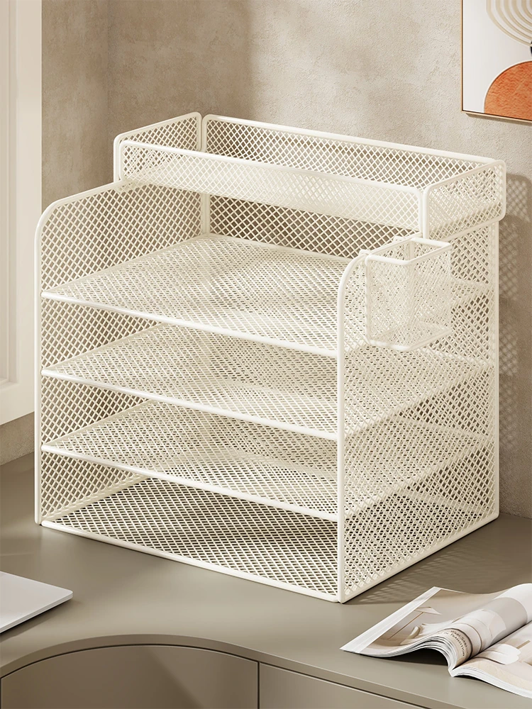 デスク整理多層収納ラック|オフィス・家庭用デスクに最適なファイルボックス|文房具をスッキリ収納できるスタンド型書棚で作業効率UP!