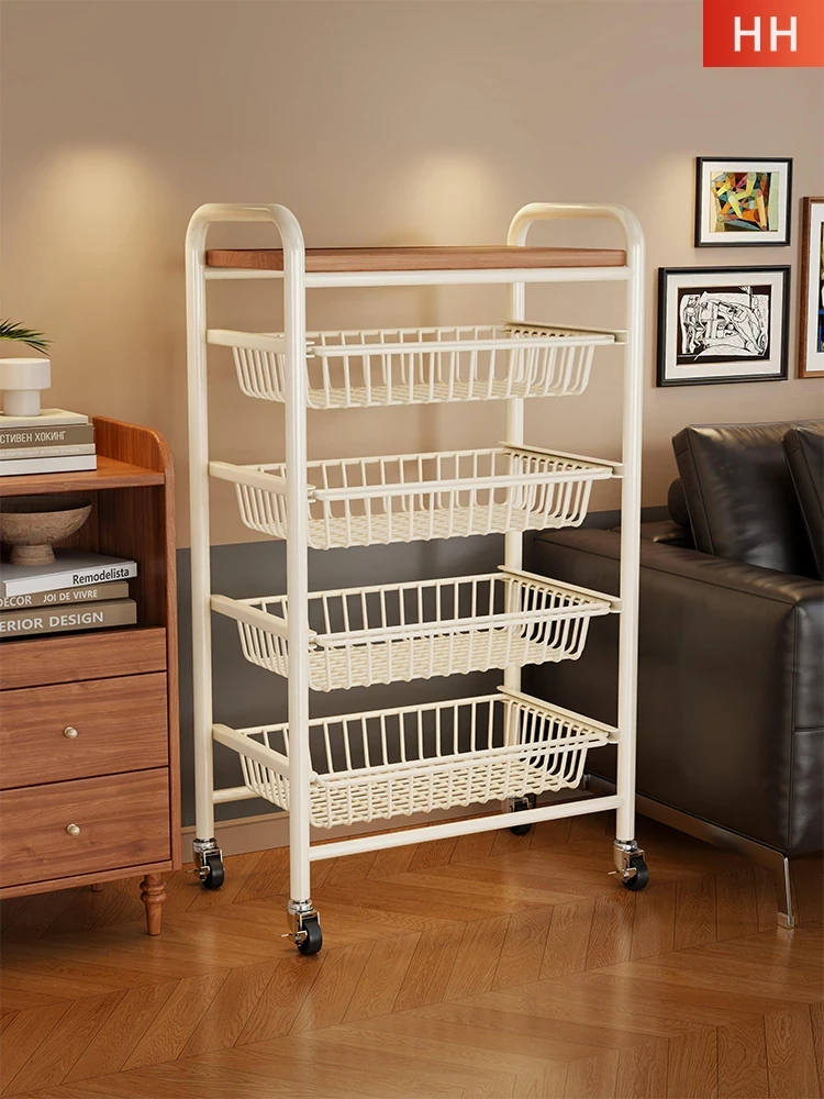 中古の小型ワゴン|リビングにぴったりなスナック収納棚|家庭用の多層キッチン野菜ラック|省スペースでおしゃれな床置き収納!