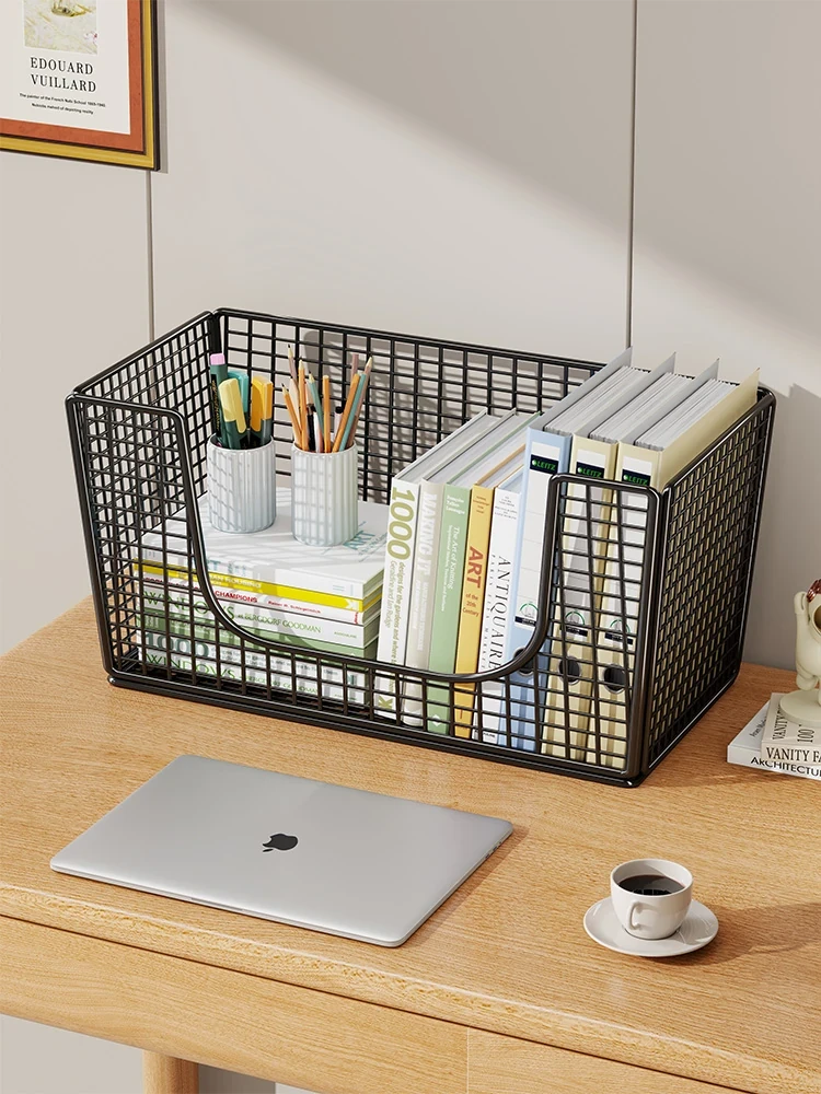 オフィスデスク収納ラック|スタイリッシュなアイアン製ファイルスタンド|学生向けシンプルな本収納|ペンホルダー付きコンパクトブックシェルフ|整理整頓で効率UP!