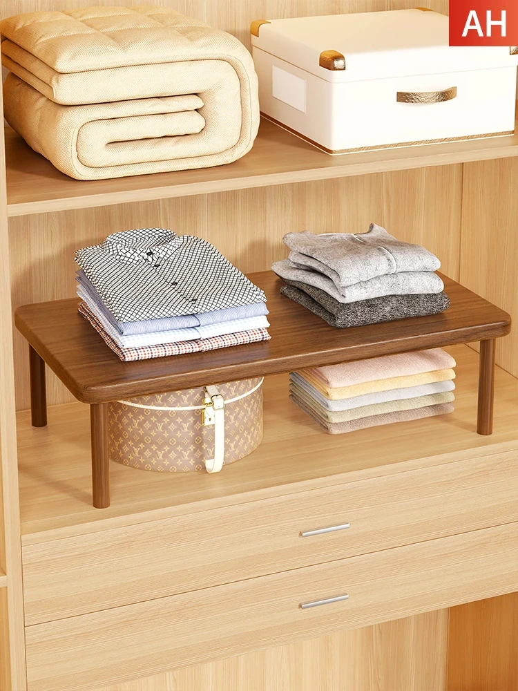 天然木製の衣装ラック - 分かりやすい仕切りで、収納力抜群!デスクトップや棚としても活躍する便利な収納アイテム。おしゃれで機能的なクローゼット収納を実現しましょう!