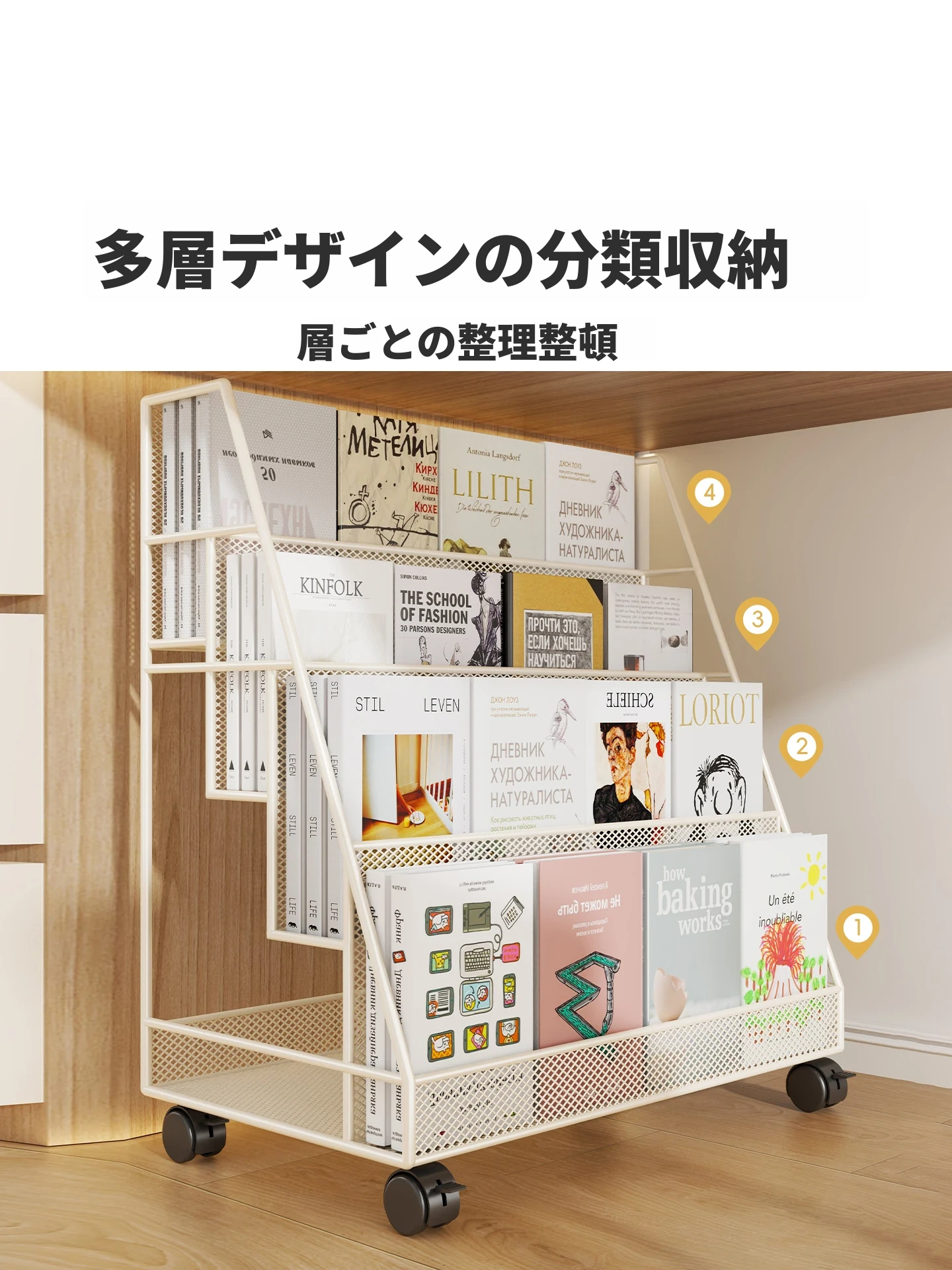 子供のための多段移動式絵本ラック - 幼稚園に最適なアイアン製の本収納棚!おしゃれで便利、可愛いお部屋作りをサポートします!