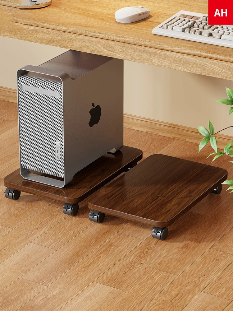 キャスター付きの無垢材製コンピューターホスティングスタンド - 移動が簡単なデスクトップケースの底座、高さ調整可能で家庭やオフィスに最適!