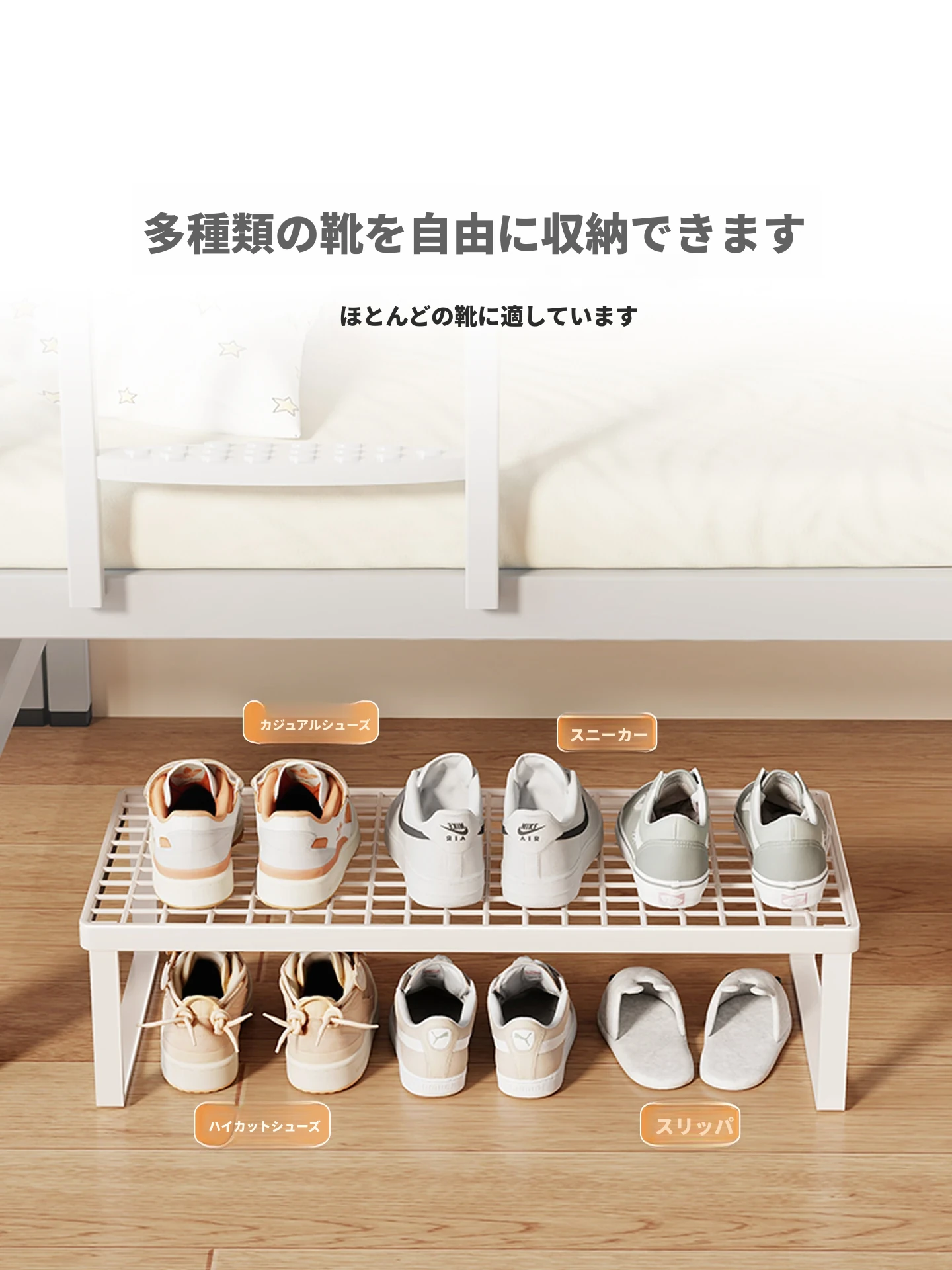 狭いスペースを有効活用!宿舎の下寝床専用・簡易シューラック - 多層収納で靴をスッキリ整理!寝室にぴったりの小型シューズストレージ。